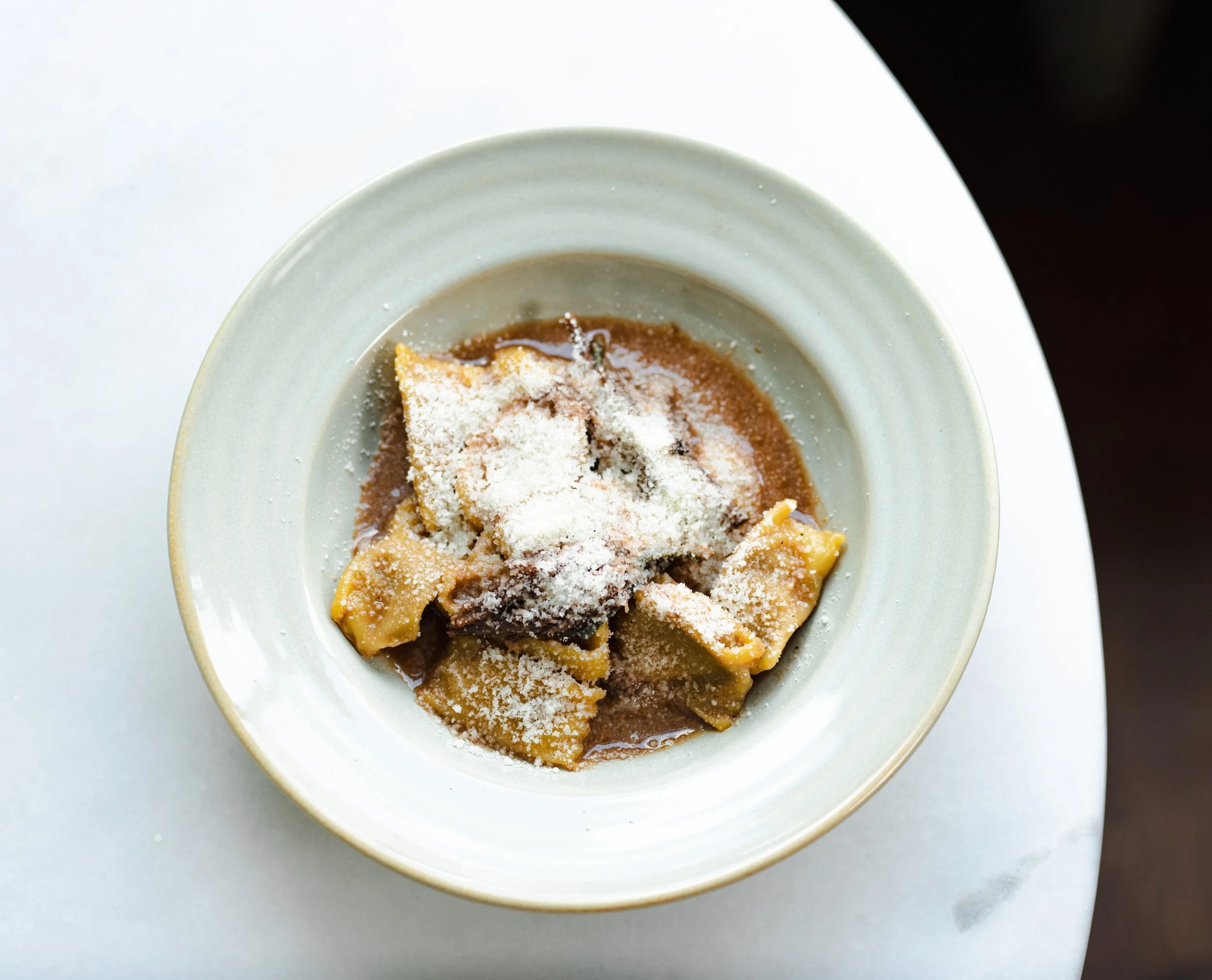 Squidink homade ravioli, dry vermouth sauce